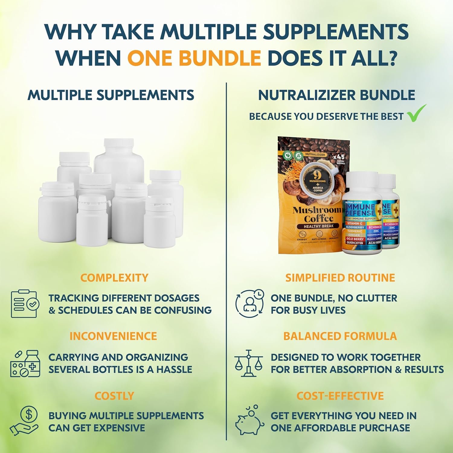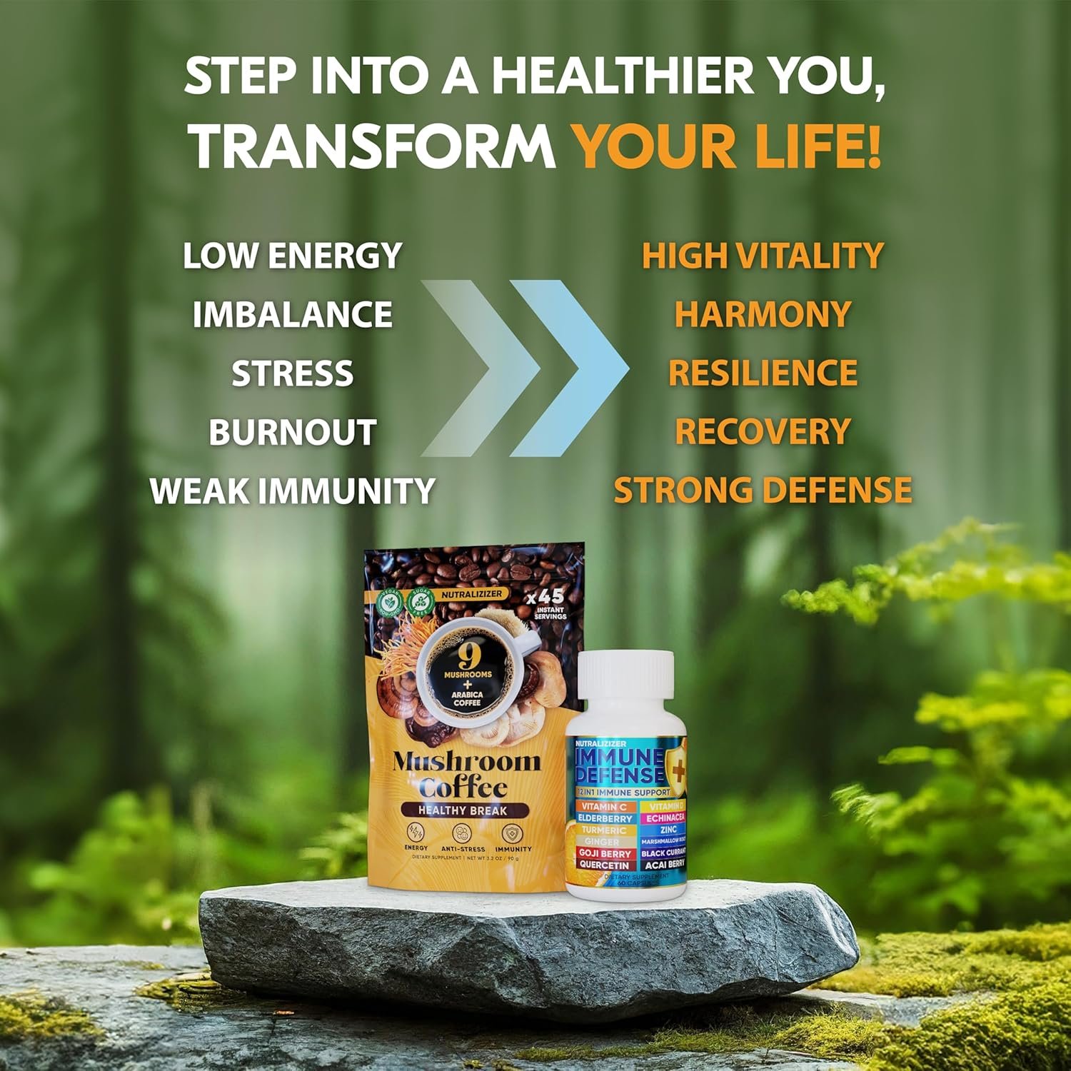• Convenient & Natural: Easy-to-swallow immune capsules and a rich, sugar-free mushroom coffee make this bundle a hassle-free addition to your health routine.